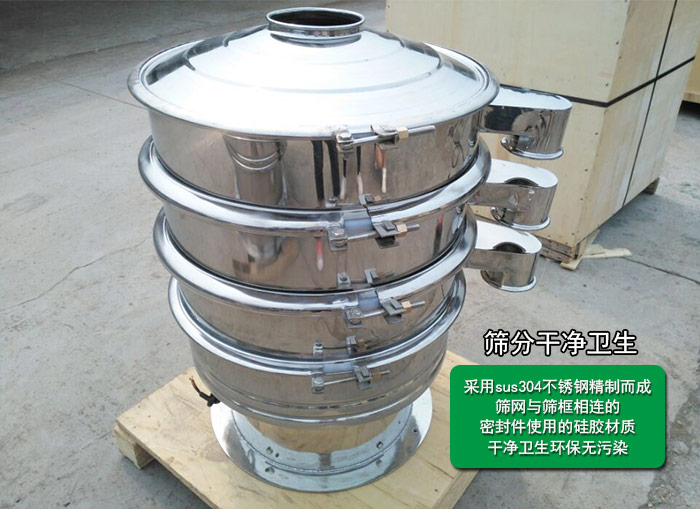 不銹鋼振動篩整機采用標準304不銹鋼精制而成,內部所有接縫高精拋磨處理,篩網與篩框相連的密封件使用的硅膠材質,干凈衛(wèi)生無污染,并且防銹防腐蝕,完全符合食品衛(wèi)生標準。