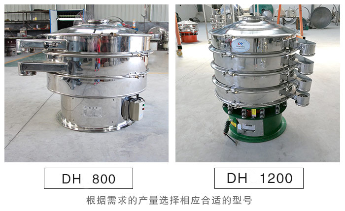 不銹鋼振動篩型號有DH600、DH800、DH1000、DH1200、DH1500、DH1800 、DH2000等。滿足客戶不同的篩分產量需求,客戶可根據需求的產量選擇相應合適的型號。