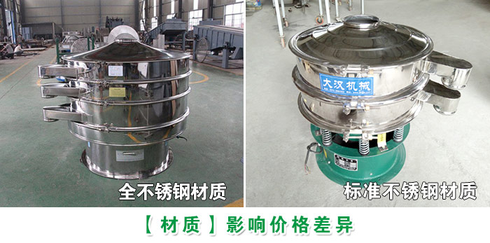 有機化肥不銹鋼振動篩是采用不同材質(zhì)的不銹鋼制作而成。不銹鋼材質(zhì)分為201、304、316和316L。這四種不同材質(zhì)的不銹鋼之間的差價是500-2000左右。不銹鋼振動篩又分為全不銹鋼材質(zhì)和標(biāo)準(zhǔn)不銹鋼材質(zhì)兩種。全不銹鋼材質(zhì)的振動篩全機身采用不銹鋼制作而成。標(biāo)準(zhǔn)不銹鋼材質(zhì)的振動篩是與物料接觸的部位采用不銹鋼材質(zhì),相對于全不銹鋼材質(zhì)的而言,價格相差600元左右。