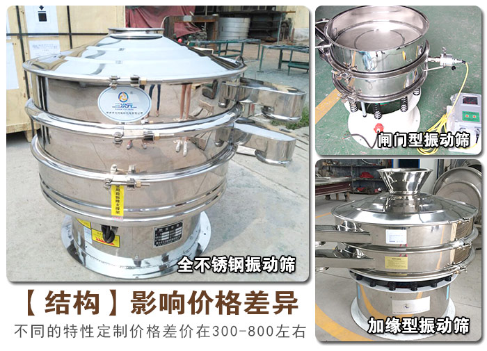 有機化肥不銹鋼振動篩對客戶的不同篩分需求支持特殊結(jié)構(gòu)的設(shè)計定制,如“加緣型、閘門型、或是框體、底座加高,進(jìn)料口加料斗等。不同的特性定制價格差價在300-800左右。