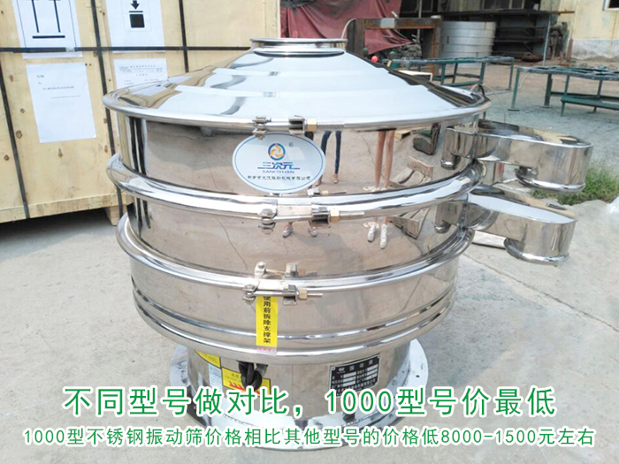 在滿足時(shí)篩500KG的花椒粉的前提下小編針對(duì)不同型號(hào)相同層數(shù)的振動(dòng)篩設(shè)備作對(duì)比,1000型不銹鋼振動(dòng)篩價(jià)格相比其他型號(hào)的價(jià)格低8000-1500元左右。