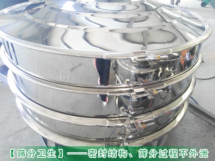 不銹鋼振動篩整機采用密閉式結(jié)構(gòu),可以避免物料在篩分過程中溢散,防止浪費物料的同時還對現(xiàn)場環(huán)境造成污染,上部分進料口處加裝有防塵蓋、篩框與篩網(wǎng)之間有密封膠圈、軟連接等進行隔離和密封,防止灰塵進入混入物料中不會受到污染,所采用的密封件均為硅膠材質(zhì)符合食品行業(yè)的篩分要求。
