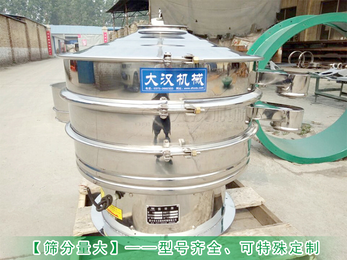 不銹鋼振動篩型號有DH-400—DH-2000等八種不同的型號,可滿足客戶不同的篩分產(chǎn)量需求,每小時篩分產(chǎn)量可達800KG左右,還可根據(jù)不同需求特殊定制(加高加緣、安裝進料斗等)。