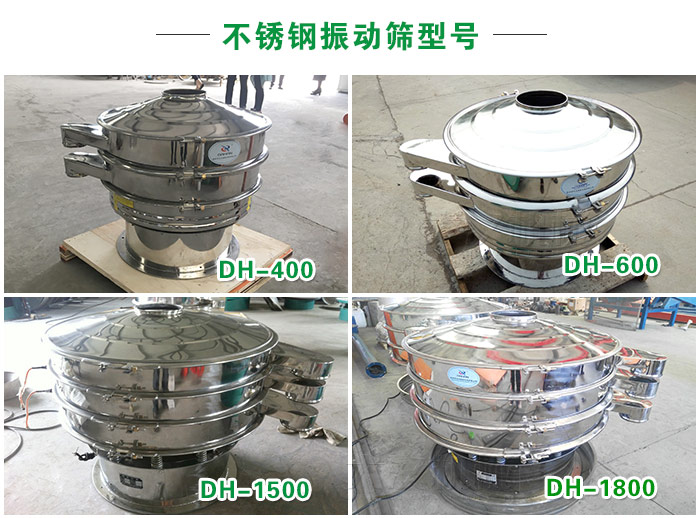 不銹鋼振動(dòng)篩型號(hào)齊全,型號(hào)有DH400、DH600、DH800、DH1000、DH12000、DH1500、DH18000等,可滿足客戶對(duì)于玉米粉產(chǎn)量的不同需求,平均篩分產(chǎn)量為時(shí)篩10噸左右!