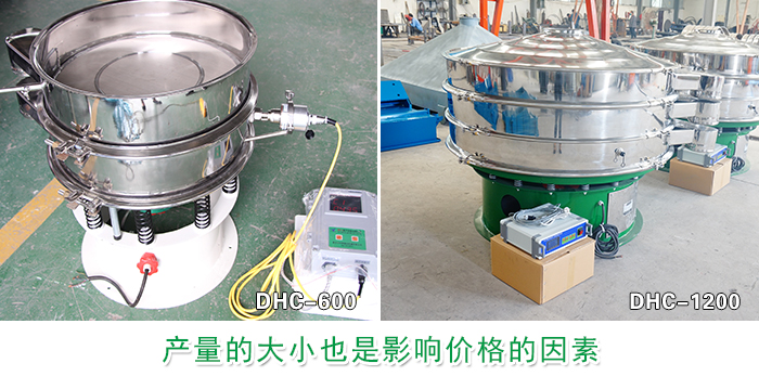 DHC-1200型超聲波振動篩:篩分直徑為1120mm,每小時篩分金屬粉末產(chǎn)量可達(dá)到3000kg-5000kg。價格在22000元左右。