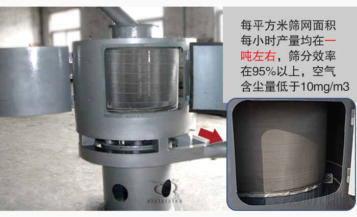 立式氣流篩適合80-530目有網(wǎng)各種粉狀物料篩選分級(jí),其篩分效率高、產(chǎn)量大、自動(dòng)進(jìn)料排料、連續(xù)作業(yè)、無污染,使以往用各種振動(dòng)篩難以進(jìn)行高細(xì)度篩分作業(yè)成為易事。經(jīng)過對(duì)120-180目輕鈣、300目重鈣、400目活性鈣、300目山楂粉、320-500目鋅粉、500目氧化鐵黑、氧化鐵紅、120-160目中藥粉、180-270目石英粉等物料的篩分使用,測(cè)得每平方米篩網(wǎng)面積每小時(shí)產(chǎn)量均在一噸左右,同時(shí)測(cè)得篩分效率在95%以上,空氣含塵量低于10mg/m3。