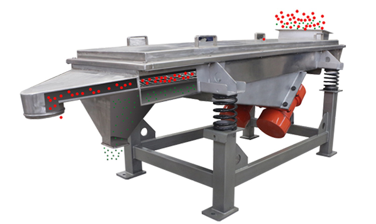 不銹鋼直線振動篩由篩箱、篩框、篩網(wǎng)、振動電機、電機臺座、減振彈簧、支架等組成。