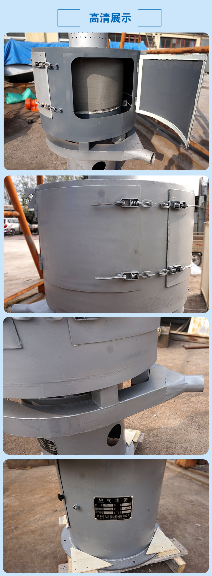 粉末顆粒立式氣流篩主要是由振動(dòng)電機(jī)、機(jī)座、篩箱、進(jìn)出料推進(jìn)裝置等部分組成的。