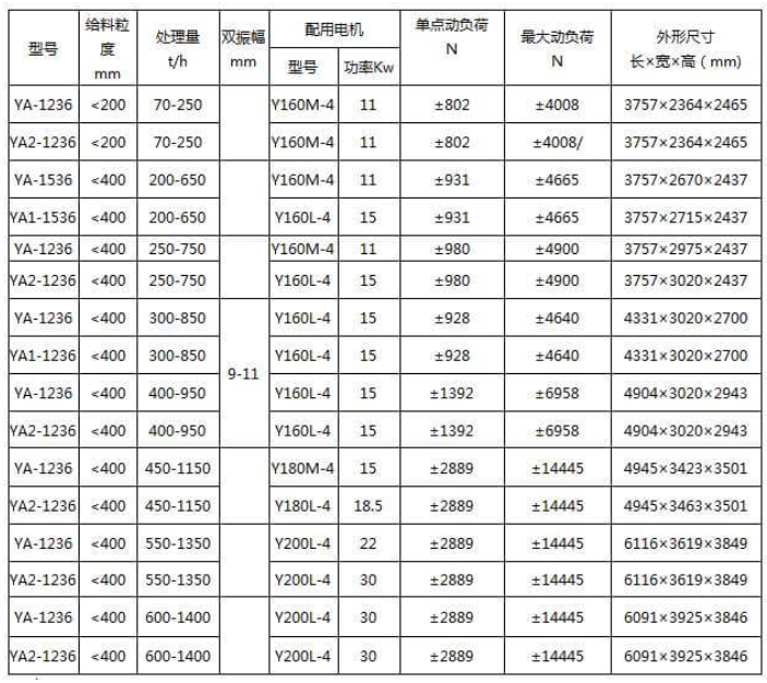 圓振動篩技術(shù)參數(shù)