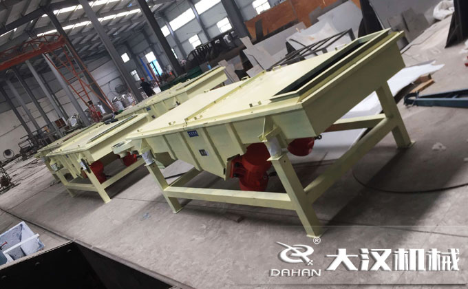 振動(dòng)電機(jī)驅(qū)動(dòng)。當(dāng)兩臺(tái)振動(dòng)電機(jī)做同步、反向旋轉(zhuǎn)時(shí),其偏心塊所產(chǎn)生的激振力在平行于電機(jī)軸線的方向相互抵消,在垂直于電機(jī)軸的方向疊為一合力,因此篩機(jī)的運(yùn)動(dòng)軌跡為一直線。兩電機(jī)軸相對(duì)篩面在垂直方向有一傾角,在激振力和物料自重力的合力作用下,物料在篩面上被拋起跳躍或向前作直線運(yùn)動(dòng),從而達(dá)到對(duì)物料進(jìn)行篩選和分級(jí)的目的。適用于粒度在0.074―5mm,含水量小于7%,無(wú)粘性的各種干式粉狀或顆粒狀物料的篩分。大給料粒度不大于10mm.。