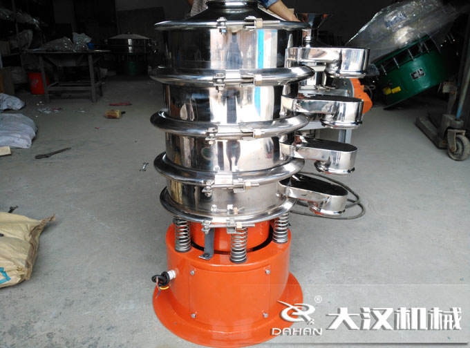 3、關(guān)于“大漢牌振動(dòng)篩”:"大漢"DH系列篩分機(jī)產(chǎn)品,經(jīng)客戶多年使用,獲得大量的一線反饋建議,在自有成熟的篩機(jī)制造技術(shù)基礎(chǔ)上,大漢機(jī)械工程師以滿足客戶需求為標(biāo)準(zhǔn),多次技術(shù)改進(jìn),篩分效果更加優(yōu)越,采用"通用"新型動(dòng)力激振器,三維動(dòng)力更加突出,適用范圍更加廣泛,大漢機(jī)械公司可根據(jù)客戶需求設(shè)計(jì)特殊型號(hào),無(wú)論物料是干是濕,是精細(xì)是粗糙,是比重大是比重輕,0-400目都可以篩選,不管是液態(tài),還是漿狀的0-600目都可以過濾。"大漢"旋振篩系列產(chǎn)品同時(shí)配備專門的篩網(wǎng)清理裝置,把堵網(wǎng)率降到低,過網(wǎng)率和處理精度得以有效提高。"大漢"具備特殊型號(hào)制造的能力讓顧客對(duì)"大漢"有更多的選擇。